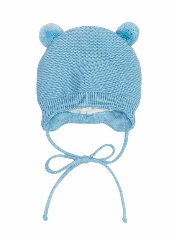 Шапочка вязаная AmaroBaby Pure Love Pompony с подкладом голубой 44