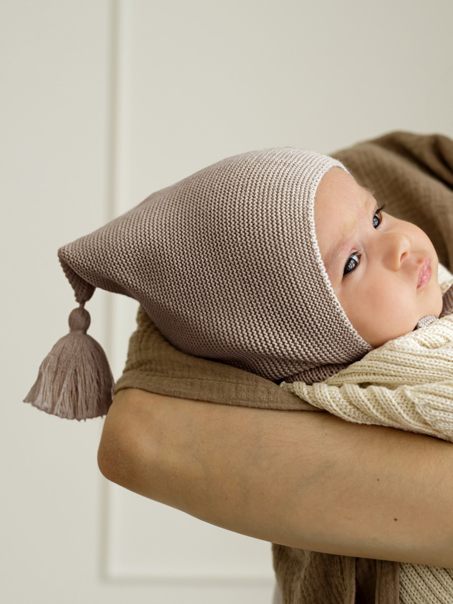 Шапочка вязаная AmaroBaby Pure Love Sweet ЧЗ коричневый 40