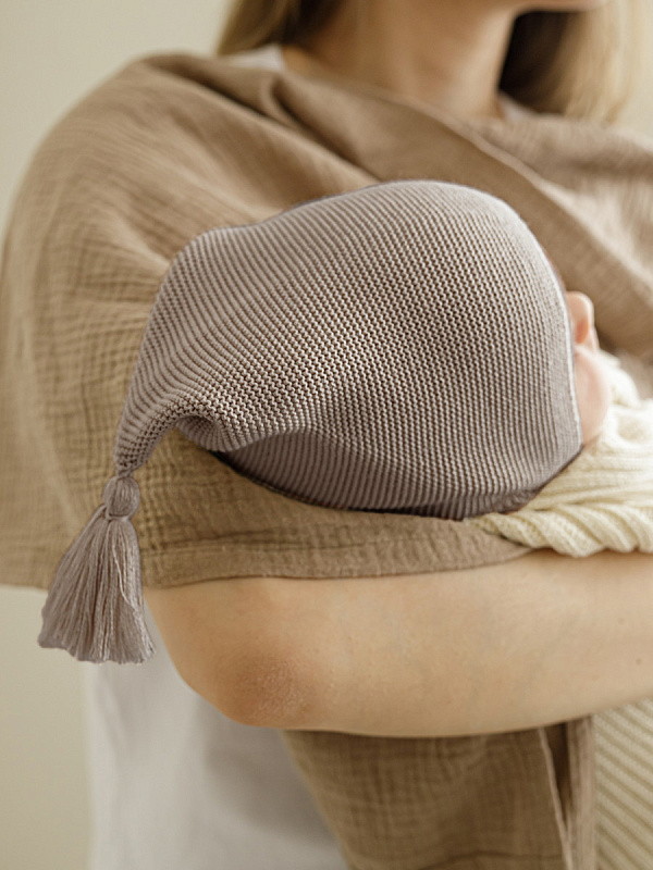 Шапочка вязаная AmaroBaby Pure Love Sweet ЧЗ коричневый 46