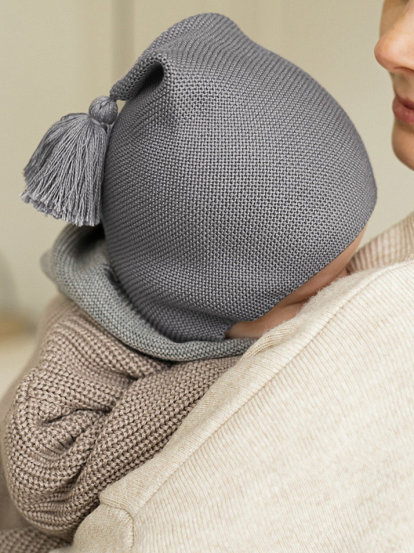 Шапочка вязаная AmaroBaby Pure Love Sweet ЧЗ серый 44