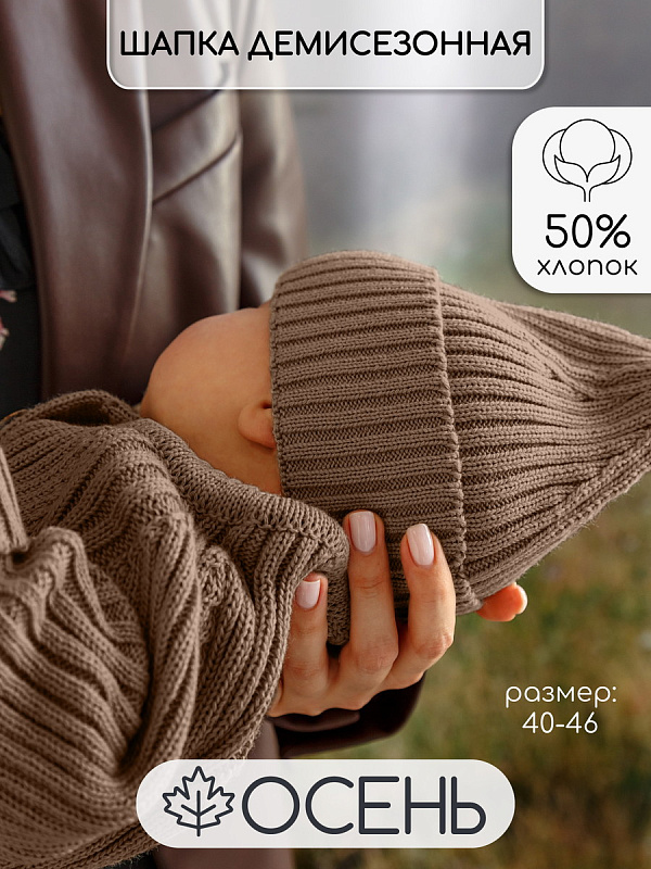 Шапочка вязаная AmaroBaby Pure Love Tot, демисезонная ЧЗ коричневый 44