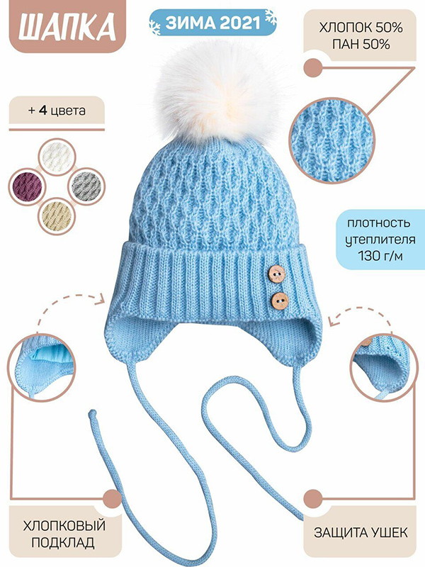 - подклад шапочки сделан из трикотажного полотна, будет мягко прилегать к голове, не вызовет раздражения благодаря своему натуральному