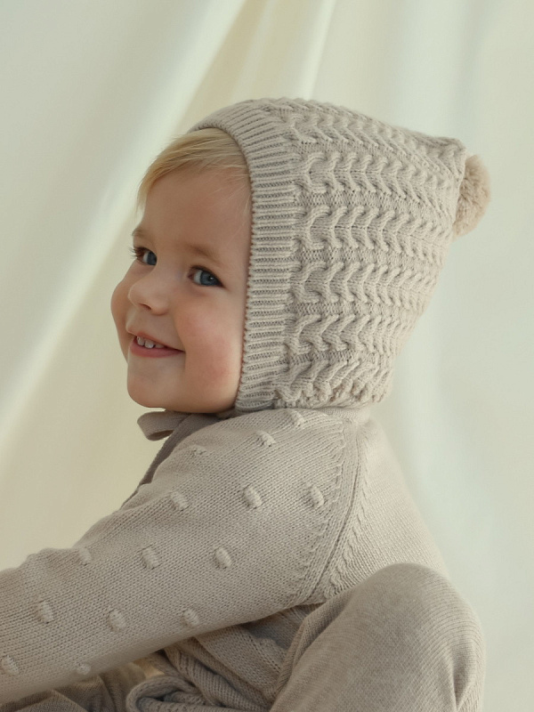 Шапочка вязаная Little Star Коса Гномик 80124 (нк) бежевый лайт 38