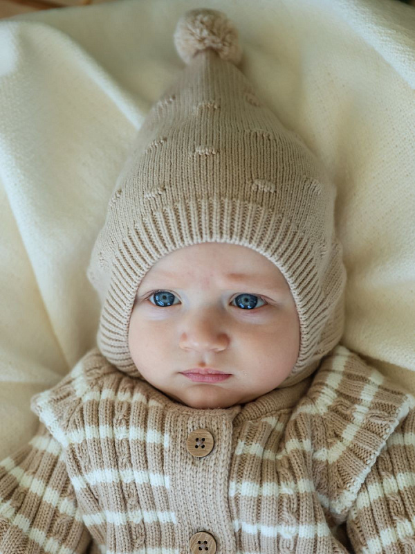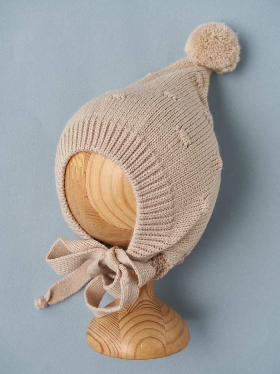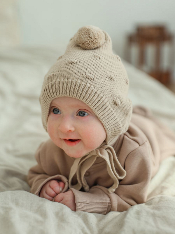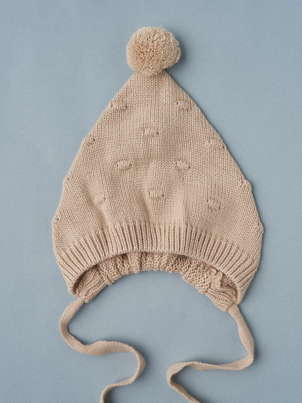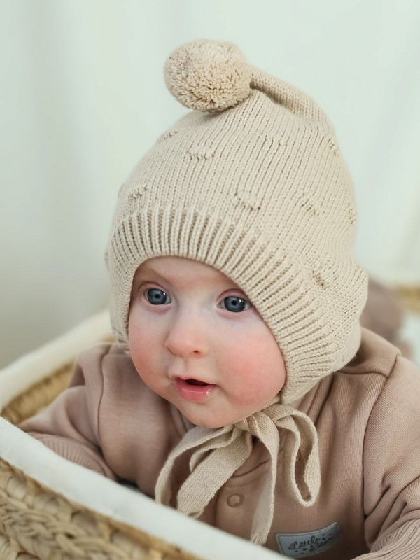 Шапочка вязаная Little Star Pom-Pom Гномик бежевый лайт 38