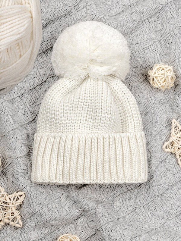 Шапочка вязаная с помпоном AmaroBaby Pure Love Muffin демисезонная молочный 44