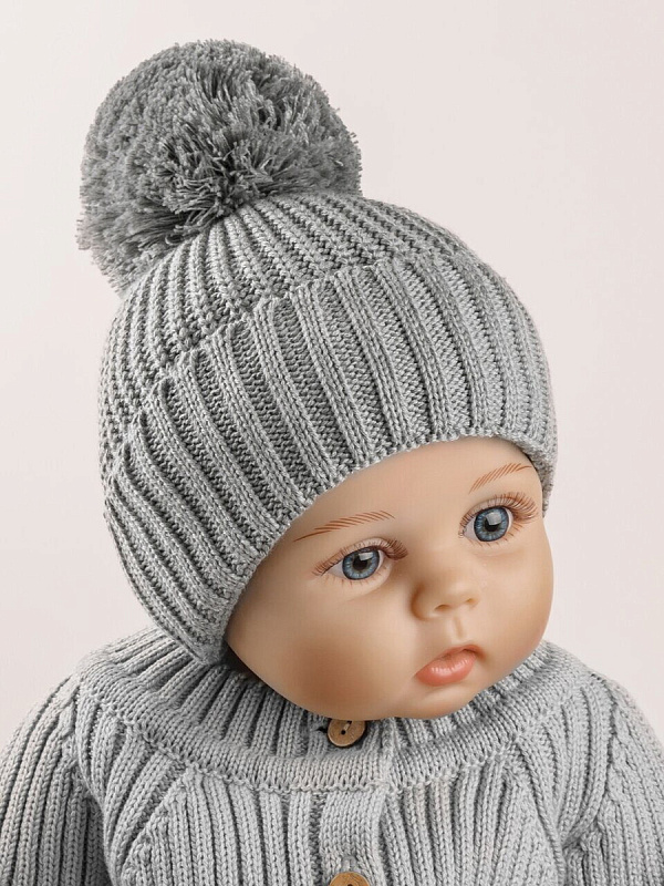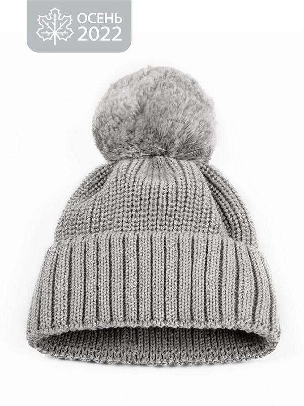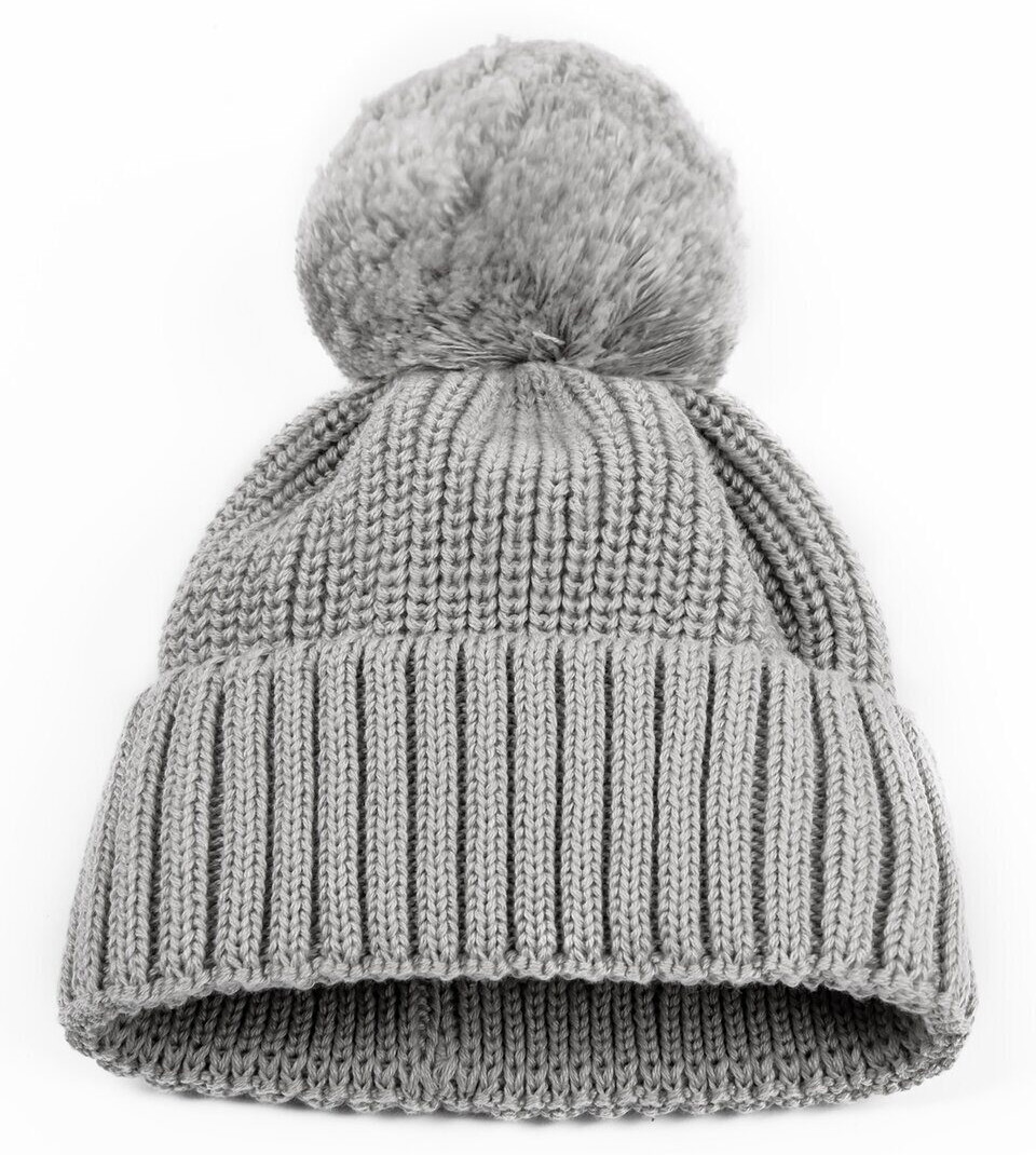 Шапочка вязаная с помпоном AmaroBaby Pure Love Muffin демисезонная серый 40