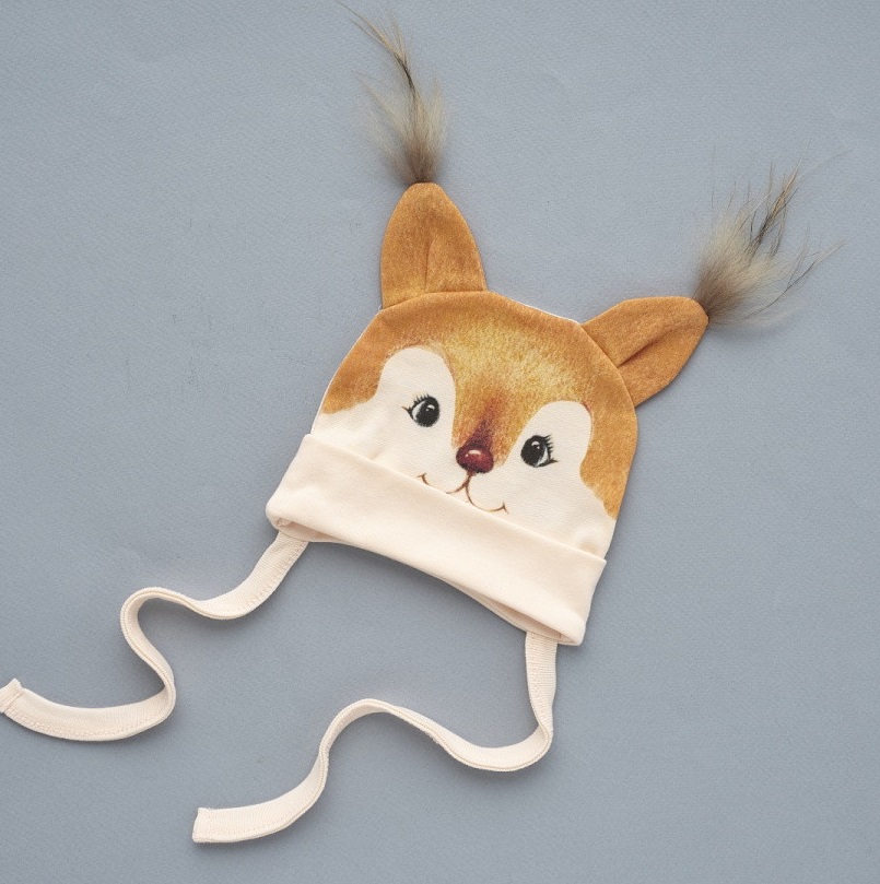Хлопковая шапочка из двухслойного трикотажного полотна. Имеет отличную посадку и очень милый дизайн с ушками и натуральным мехом. Швы наружу в размерах 34-38. УХОД: рекомендована ручная или машинная стирка с использованием детского порошка, на деликатном режиме, при температуре воды не выше 40 градусов. Не отбеливать.