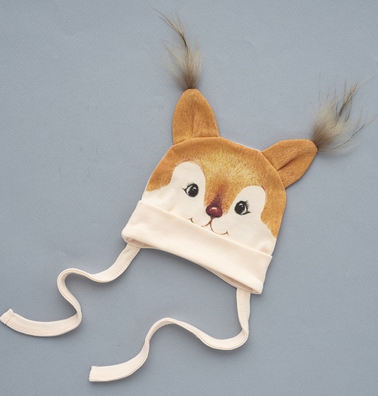 Хлопковая шапочка из двухслойного трикотажного полотна. Имеет отличную посадку и очень милый дизайн с ушками и натуральным мехом. Швы наружу в размерах 34-38. УХОД: рекомендована ручная или машинная стирка с использованием детского порошка, на деликатном режиме, при температуре воды не выше 40 градусов. Не отбеливать.