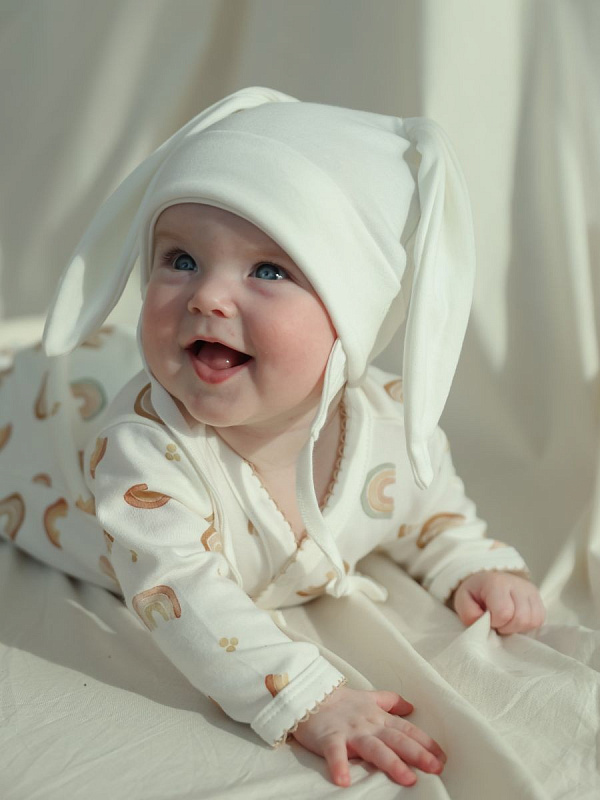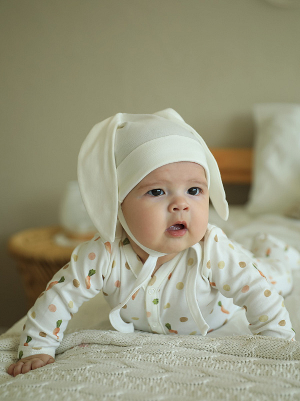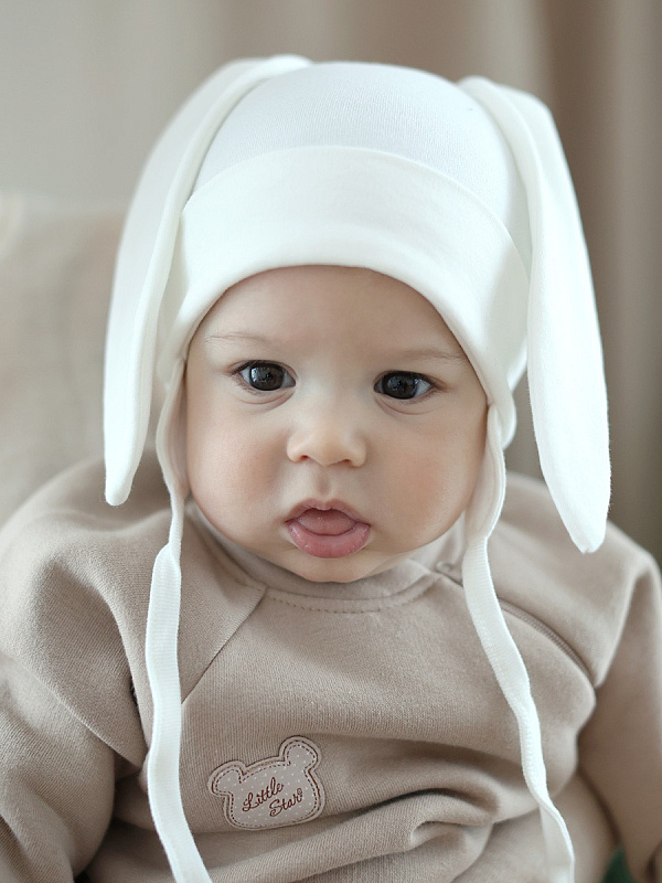 Шапочка-котелок Little Star Зайка с завязками 84010 крем 36
