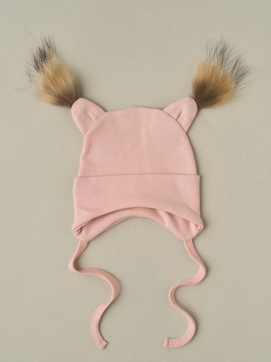 Шапочка-котелок с завязками Little Star Белочка 8405 (ЧЗ-мз) пудровый 3018 38