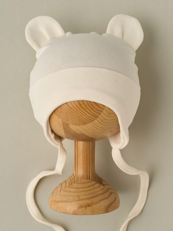 Шапочка-котелок с завязками Little Star Мишка 8405 (ЧЗ-мз) сливочный 38