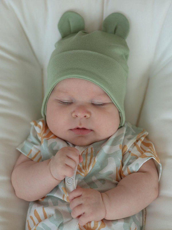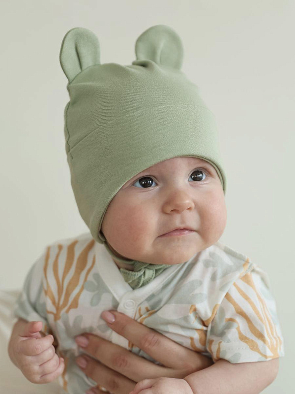 Шапочка-котелок с завязками Little Star Мишка 8405 (ЧЗ-мз) фисташковый 36