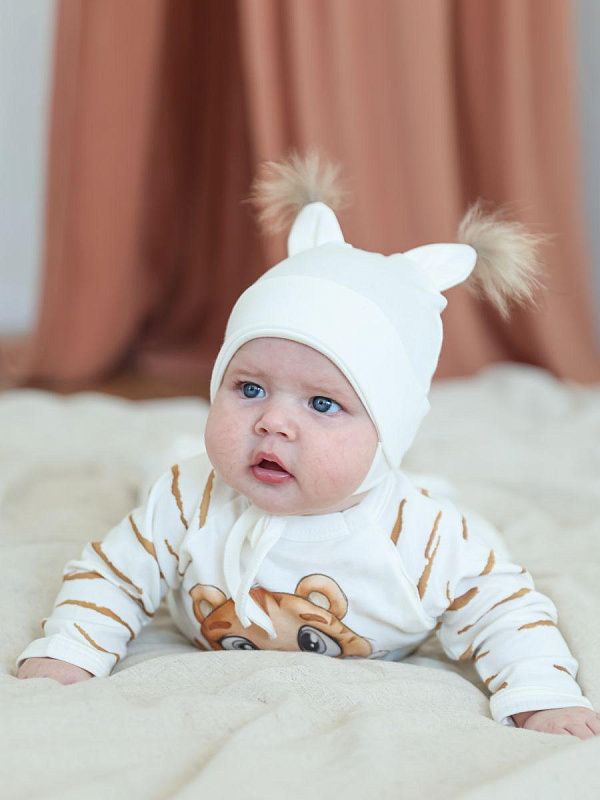 Шапочка-котелок с завязками Little Star Рысенок 84010 (ЧЗ-мз) бежевый 36
