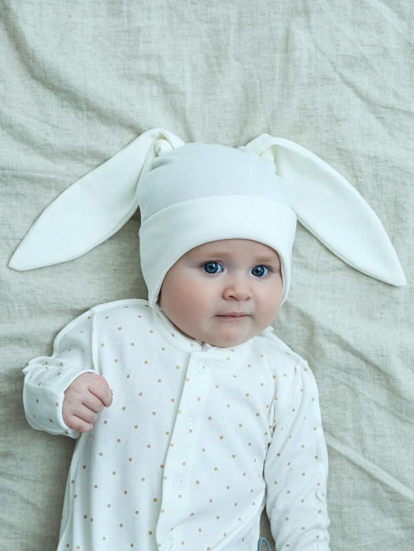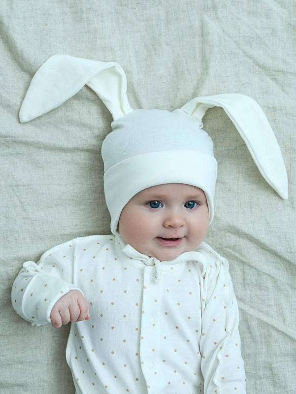 Шапочка-котелок с завязками Little Star Зайка 8405 (ЧЗ-мз) крем 36