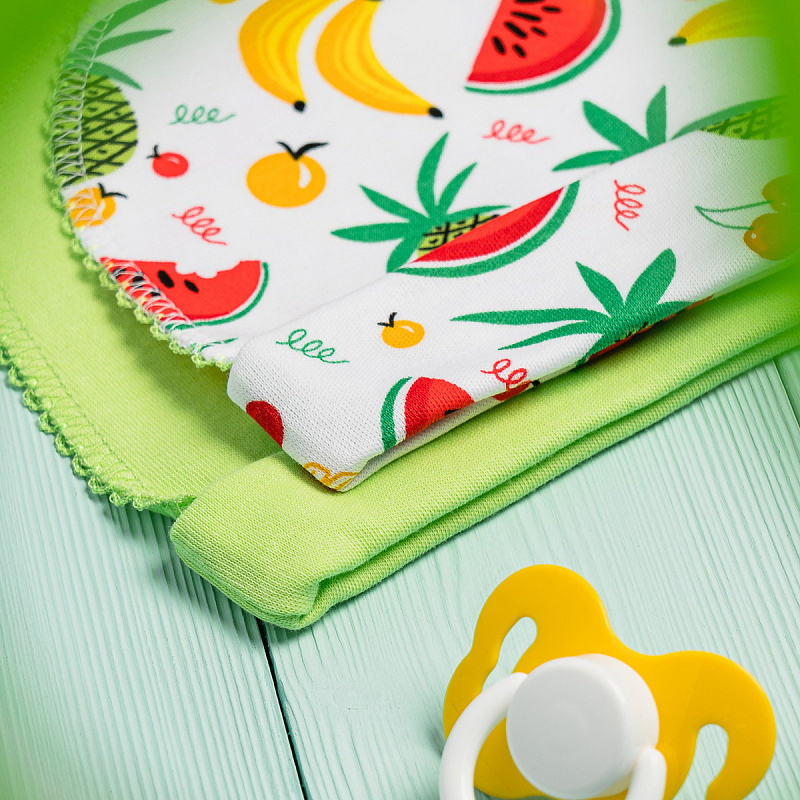 Комплект из двух шапочек Vikalex "Фрукты" предлагает универсальное решение для разнообразных стилей и настроений. Первая шапочка порадует малыша яркими и веселыми фруктовыми принтами, поднимая настроение в пасмурные дни и добавляя игривости любому наряду. Каждая деталь рисунка выполнена с любовью и вниманием, чтобы вызвать улыбку на лице ребенка.