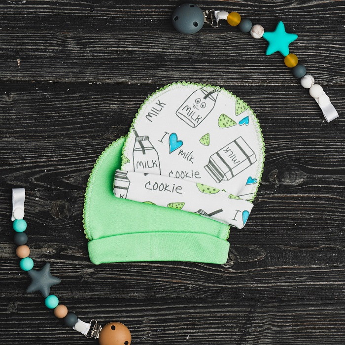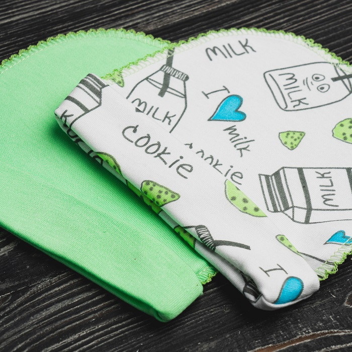 Комплект шапочек выполнен из натуральной ткани, которая хорошо пропускает воздух. Наружные швы не будут доставлять крохе неудобств.
