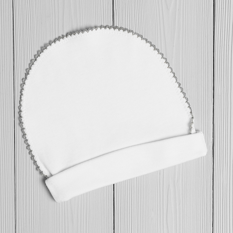 Шапочка для новорожденного с отворотом подойдет для выписки из роддома или для прогулок на улице в тёплую погоду. Ткань хорошо тянется, модель с отворотом. В комплекте две шапочки, выполненные из 100% хлопка (интерлок качества пенье), гипоаллергенного и экологически чистого. Подходит для мальчика и девочки. Швы снаружи не будут доставлять новорожденному малышу неудобства.