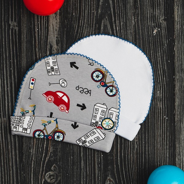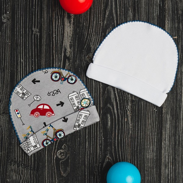 Комплект шапочек выполнен из натуральной ткани, которая хорошо пропускает воздух. Наружные швы не будут доставлять крохе неудобств.