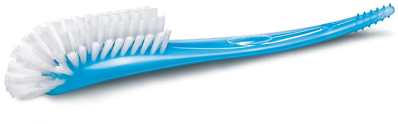 Щеточка для бутылочек Philips AVENT имеет особую изогнутую форму и литую ручку, поэтому с ее помощью можно чистить бутылочки и соски любых типов, а также другие принадлежности для кормления. Плотные щетинки бережно очищают поверхность, не царапая ее.