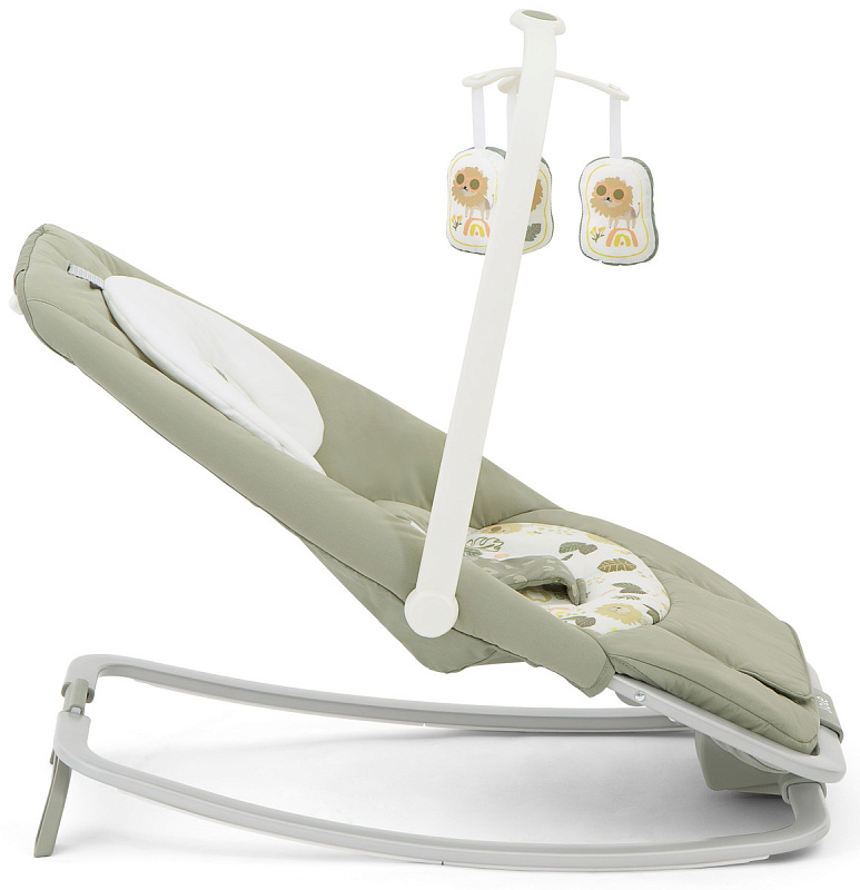 - Шезлонг реагирует на каждое движение малыша мягкими покачиваниями