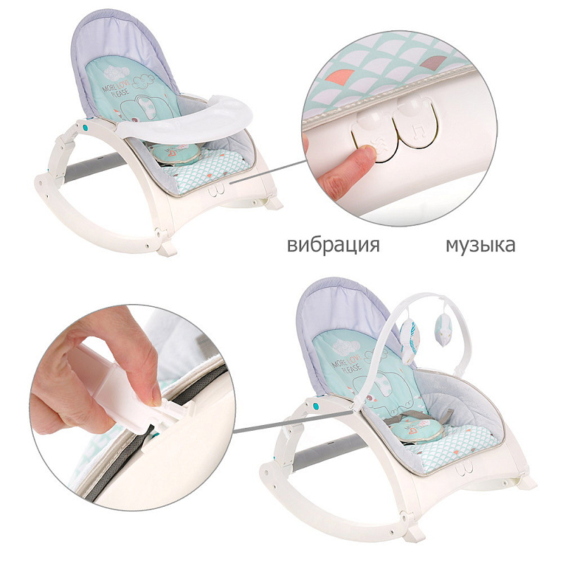Модель 2 в 1 представляет собой стул и качалку. Выполнена в привлекательном и интересном дизайне. Легко и компактно складывается для удобства хранения и транспортировки.