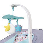 Как бы хорошо ни было на руках у взрослого, иногда приходится покидать объятия: у мамы есть необходимость отвлечься на другие дела, а у малыша — заняться изучением окружающего мира. Обоим поможет шезлонг с функцией укачивания Mellare M1. Детям первых месяцев жизни он позволит с интересом и пользой провести время бодрствования, наблюдая за симпатичным мобилем, трогая игрушки-подвески и прислушиваясь к приятным мелодиям. Это простое, на первый взгляд, занятие эффективно развивает слух, зрение, тактильные ощущения и мелкую моторику малыша. Сменить активность на дрёму и поддержать спокойный сон поможет функция виброукачивания. Входящее в комплект мягкое одеяло подарит дополнительный комфорт, а надёжные трёхточечные ремни — безопасность. Для подросшего ребенка шезлонг может использоваться как стульчик. В числе дополнительных преимуществ — шесть положений наклона спинки, возможность качения и износостойкие моющиеся материалы.