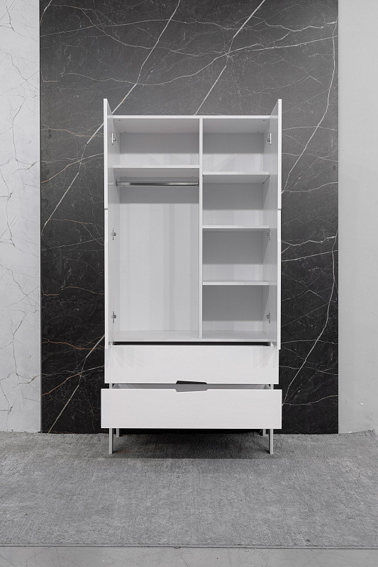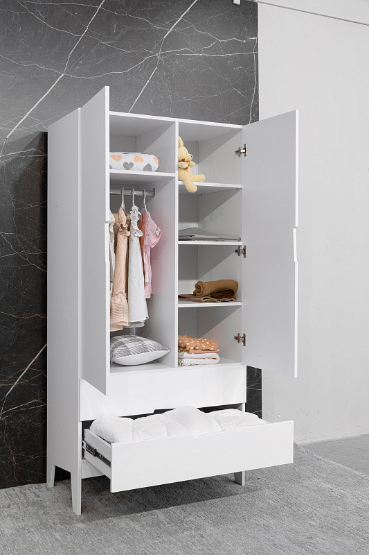 Fiora - это функциональный и стильный элемент мебели, который поможет организовать хранение вещей и поддерживать порядок в комнате подростка. Цвет ящиков можно выбрать на свой вкус, чтобы он гармонично сочетался с другими предметами интерьера. Внутреннее наполнение шкафа включает в себя полки для хранения одежды, выдвижные ящики для белья и аксессуаров, а также штангу для вешалок.