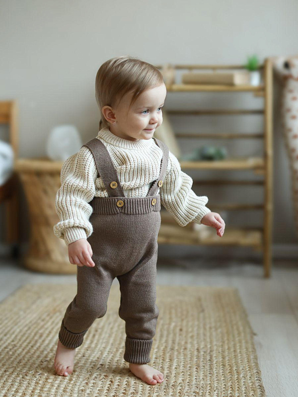 Штанишки Little Star вязаные на бретелях 80072 (ЧЗ-нк) молочный шоколад 56