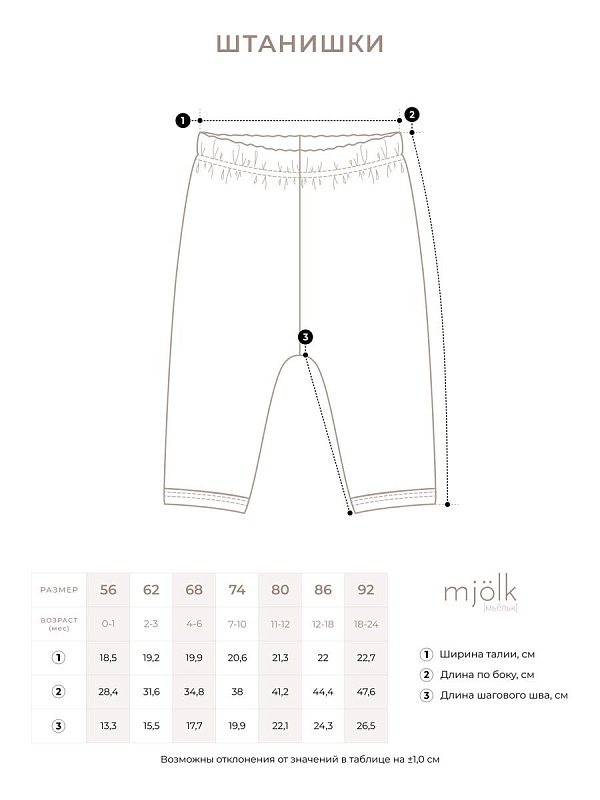 Штанишки Mjölk [мьёльк] Хлопок – классические трикотажные штанишки с открытой ножкой на всех размерах. Выполнены из нежного и плотного хлопка, не мешают малышу активно двигаться и не сковывают движений.