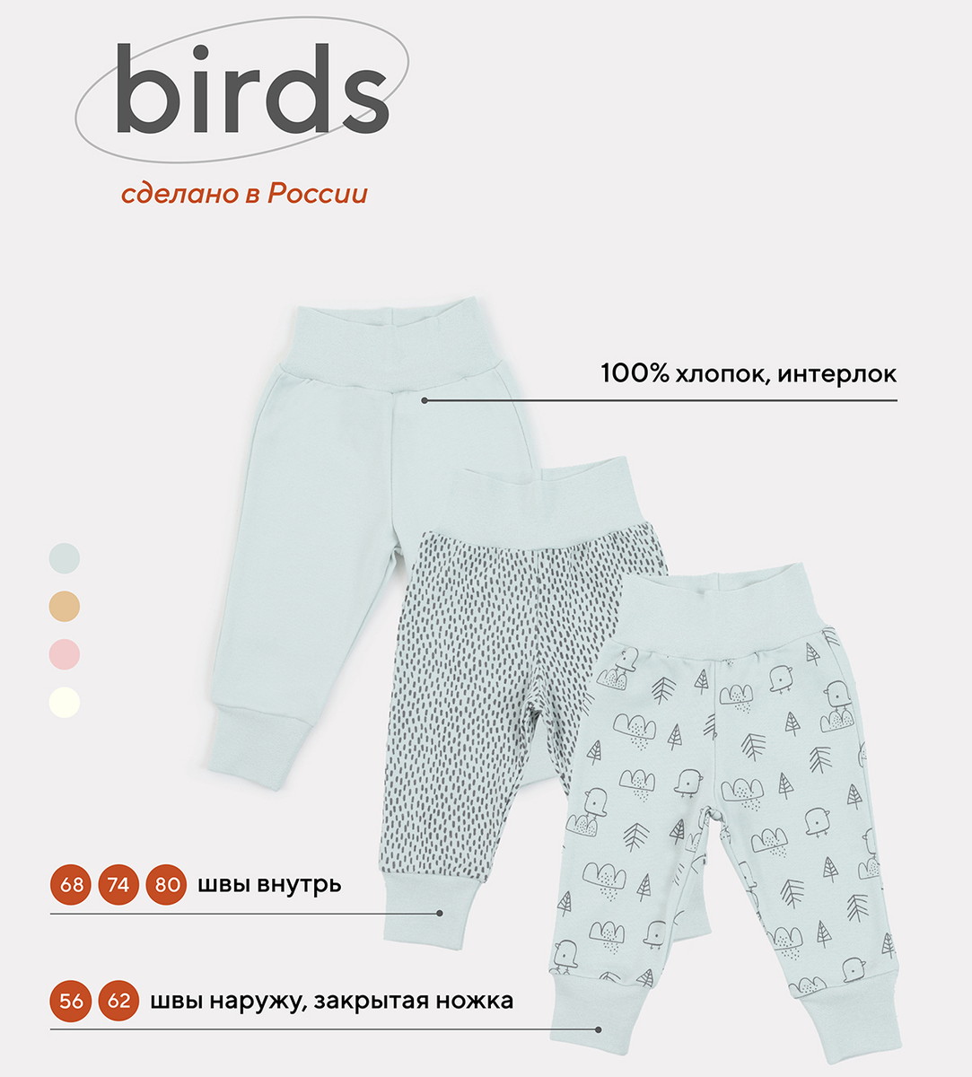 Коллекция Birds, выполненная в модном ретростиле, - это монохромные цвета, устойчивые контурные принты, лаконичный крой, качественная фурнитура в тон и хлопок премиум-класса (интерлок-пенье).