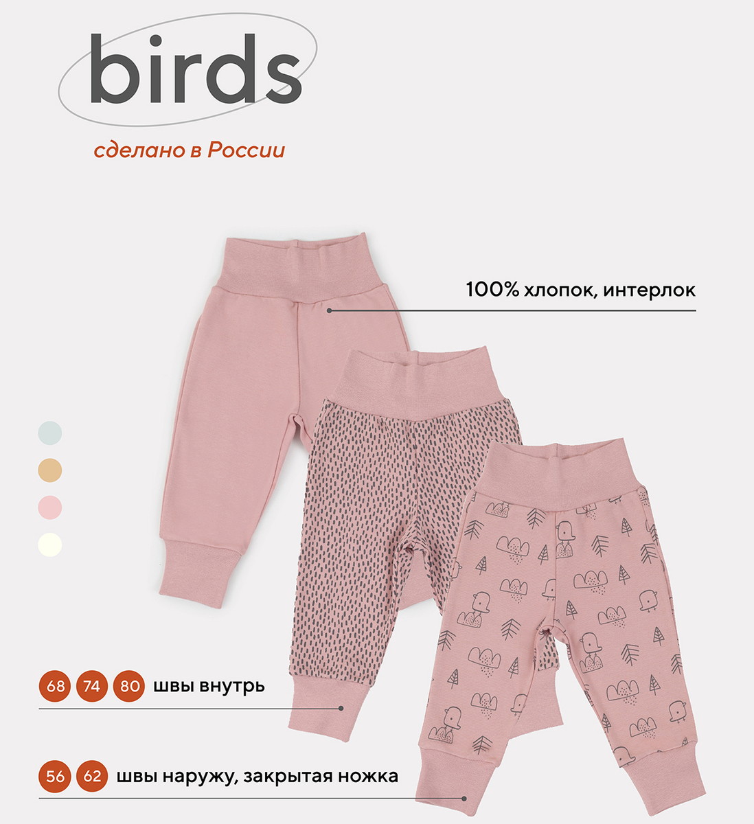 Коллекция Birds, выполненная в модном ретростиле, - это монохромные цвета, устойчивые контурные принты, лаконичный крой, качественная фурнитура в тон и хлопок премиум-класса (интерлок-пенье).