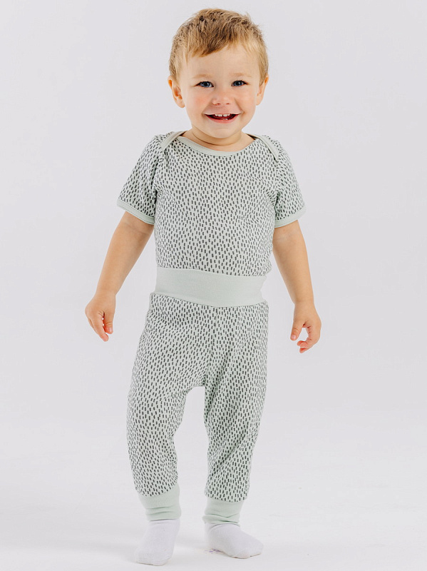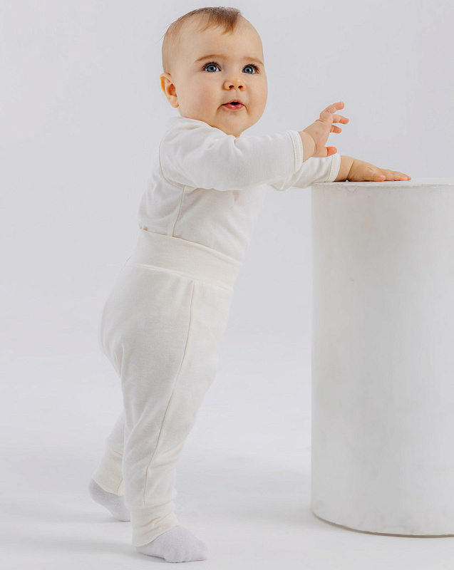 Штанишки из этой коллекции дополнены мягким широким поясом и манжетами - на маленькие ножки и крохотный животик резинка давить не будет.