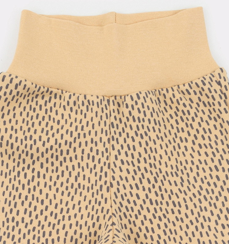 Штанишки из этой коллекции дополнены мягким широким поясом и манжетами - на маленькие ножки и крохотный животик резинка давить не будет.