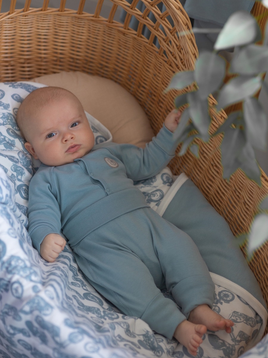 Ультрамодные и комфортные штанишки для новорожденных свободного кроя. Выполнены из органического хлопка и имеют удобные манжеты с отворотом, которые можно отворачивать по мере роста ребёнка. Широкий эластичный пояс совсем не сдавливает животик малыша.