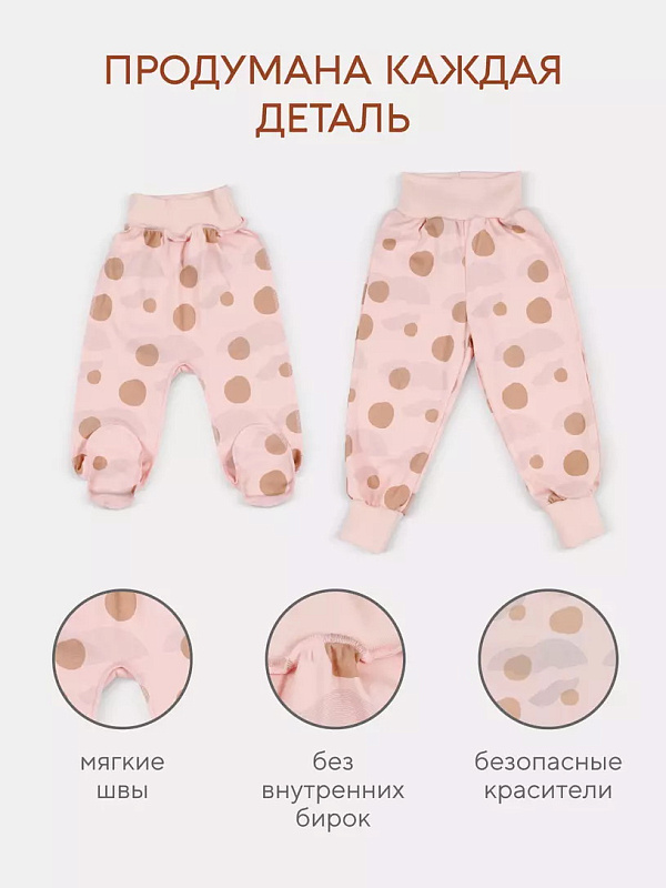 Штанишки из этой коллекции дополнены мягким широким поясом и манжетами - на маленькие ножки и крохотный животик резинка давить не будет.