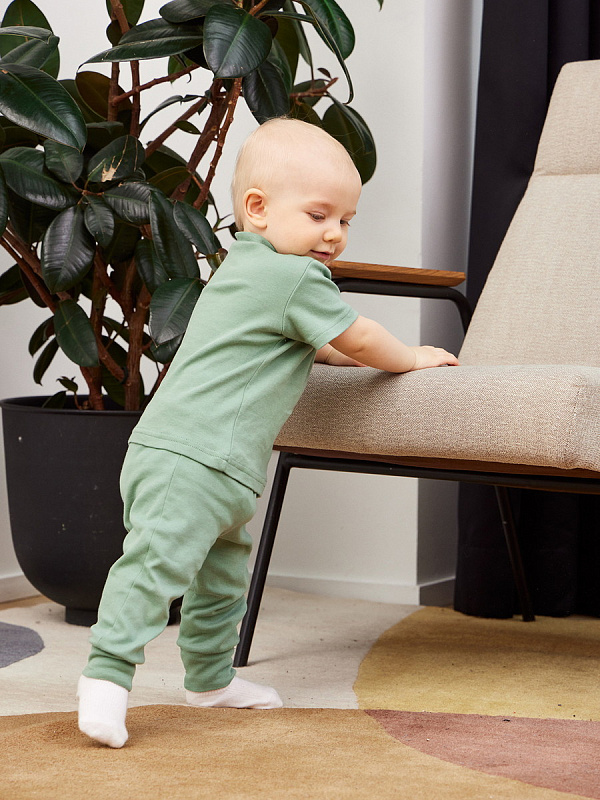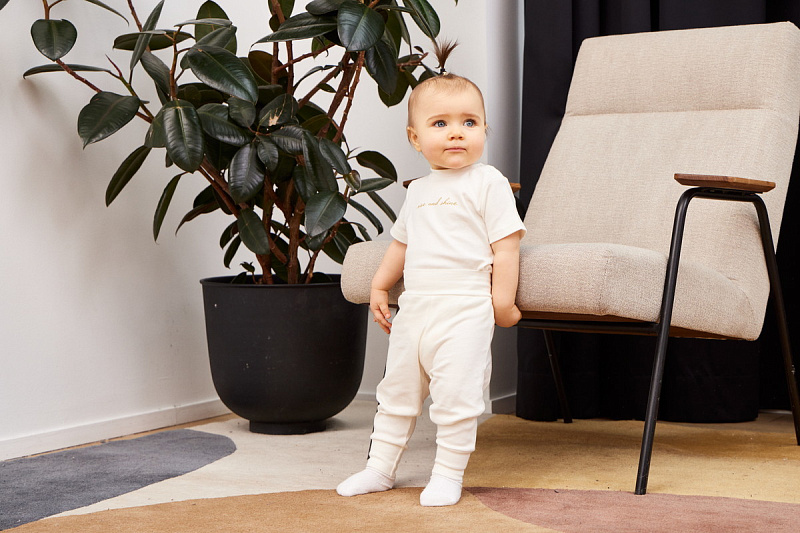Штанишки из этой коллекции дополнены мягким широким поясом и эластичными манжетами - на маленькие ножки и крохотный животик резинка давить не будет.
