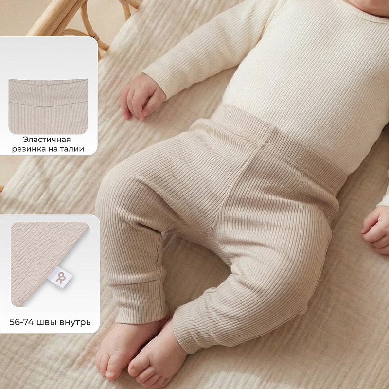 Штанишки из этой коллекции дополнены мягким широким поясом и манжетами - на маленькие ножки и крохотный животик резинка давить не будет.
