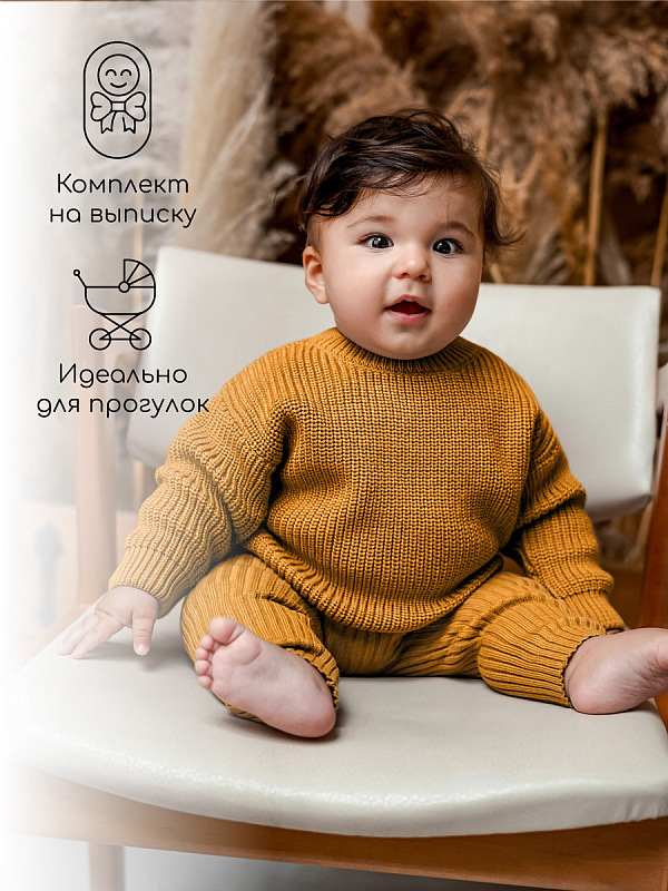 Штаны вязаные детские AmaroBaby Pure Love Comfy горчичный 74