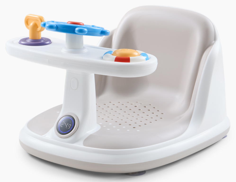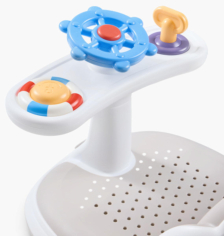 - Удобная конструкция — продуманная форма сиденья надежно фиксирует малыша, помогая ему удобно расположиться в ванне