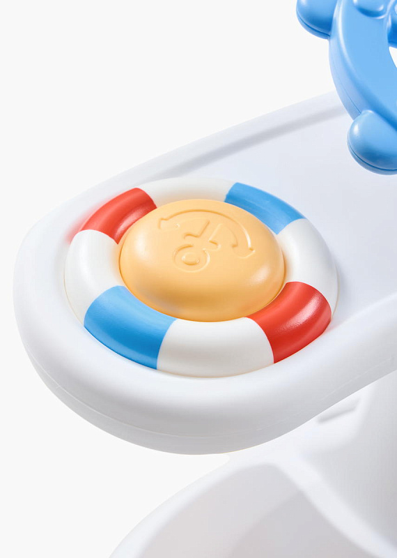 - Развитие и игра — руль, пищалка-уточка и спасательный круг стимулируют мелкую моторику и воображение ребенка
