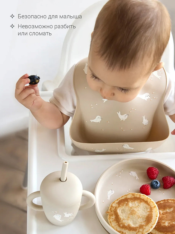 Тарелки представлены в четырех оттенках и принтах: Тюлень, Воздушный транспорт, Черника, Птички. Теперь можно собрать полноценную единую коллекцию посуды для малыша: поильник, тарелка, нагрудник и ложечки.