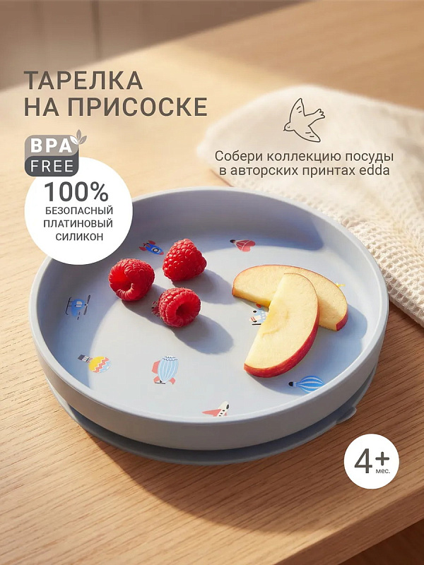 Силиконовая тарелка с авторским принтом edda — это не просто посуда, а эстетика повседневных ритуалов. Нежные оттенки и сюжеты, вдохновлённые простыми моментами детства, собирают цельную коллекцию бренда в едином стиле и создают гармонию в современном доме. Рисунок мягко привлекает внимание малыша и превращает кормление в игру, помогая доесть всё до последней капли.