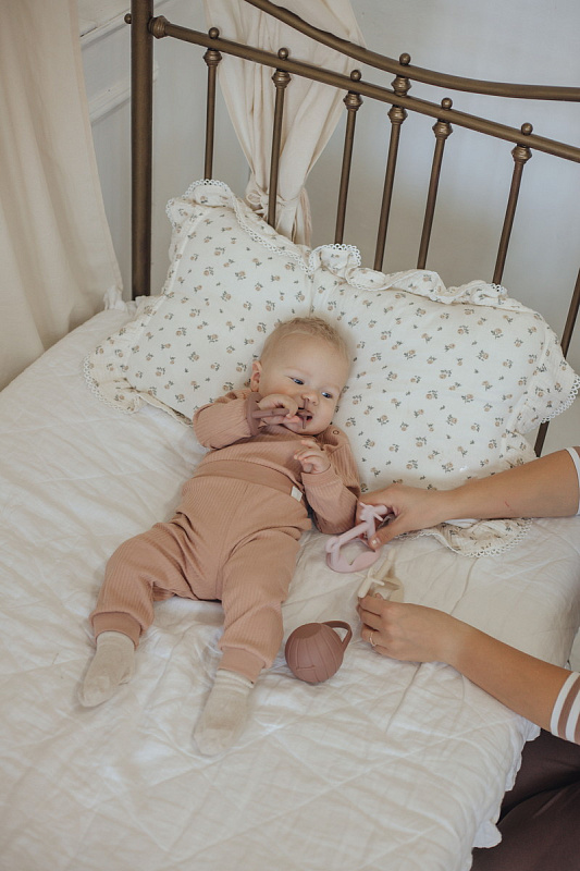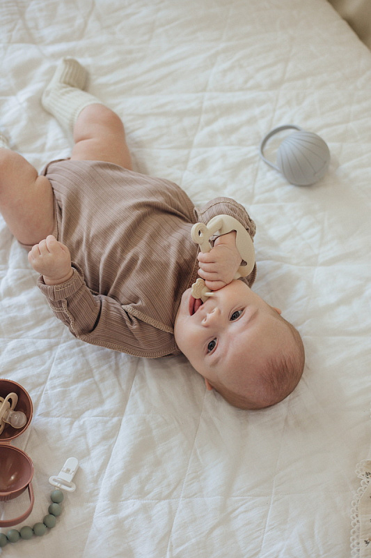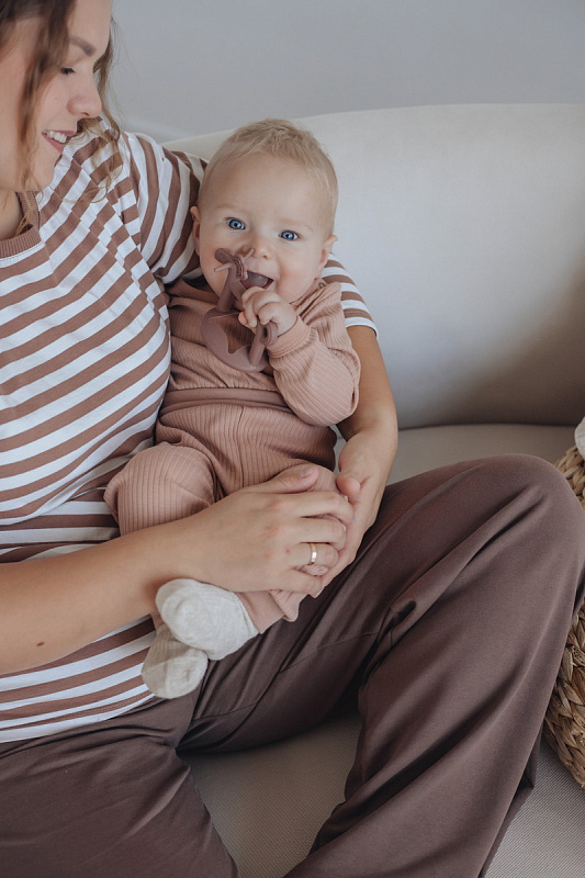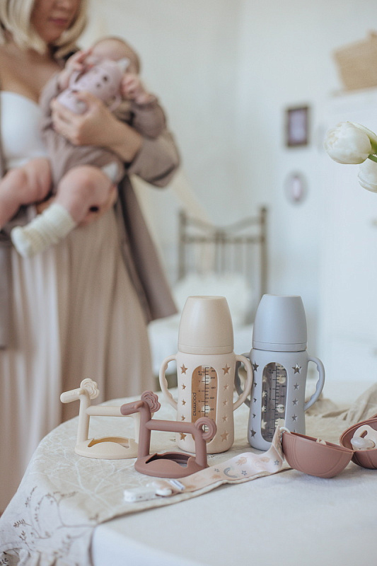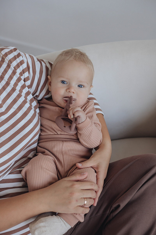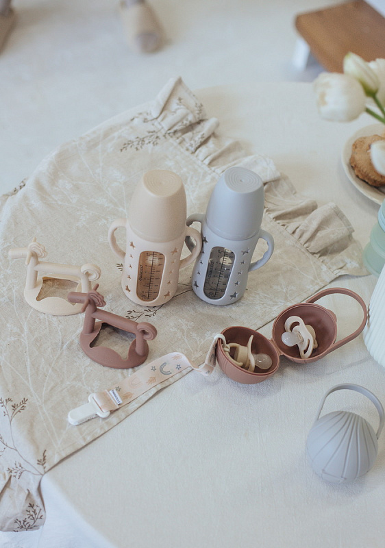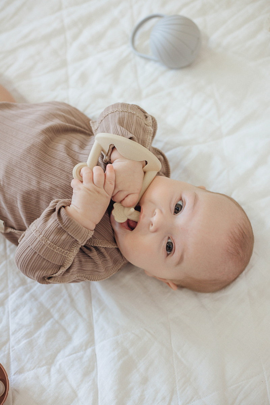 Прорезователь можно ставить вертикально, предотвращая контакт с поверхностями и сохраняя гигиеничность. Гармоничные пастельные оттенки грызунка отлично сочетается с интерьером детской комнаты и другими аксессуарами бренда Paomma.