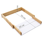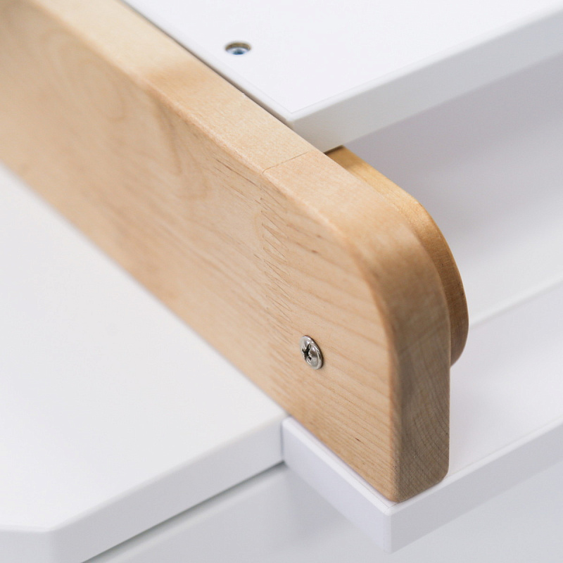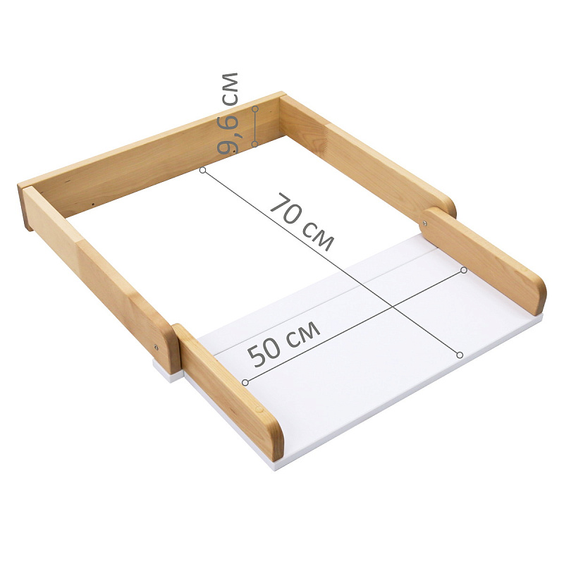 Складной универсальный пеленальный столик (СУПС) - это идеальное изделие для установки на крышку комода и пеленания малыша от 0 до 6 месяцев. Складная пеленальная доска удобна тем, что при ненадобности пеленания ребенка, ее можно сложить и пользоваться комодом, как полноценным и эксплуатировать все ящики без ограничений. Еще одна отличительная черта СУПСа - крепление к комоду, без лишних отверстий в плоскости крышки. С помощью винтов(сзади) и крепежных пластинок (спереди) данный столик стоит жестко.