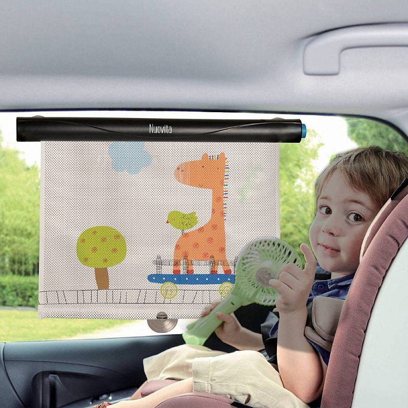 Солнцезащитная рулонная шторка для автомобиля Tenda Rotell – это аксессуар, который защитит ребенка от ярких солнечных лучей во время поездки в автомобиле. Фиксируется на стекло автомобиля при помощи присосок и вытягивается из рулона на желаемую длину, есть удобная кнопка сложения, а милый рисунок жирафа будет радовать ребенка во время поездки в автомобиле. Универсальна для всех моделей автомобилей и проста в установке. Легко чистится, помогает сохранить прохладу внутри автомобиля.
