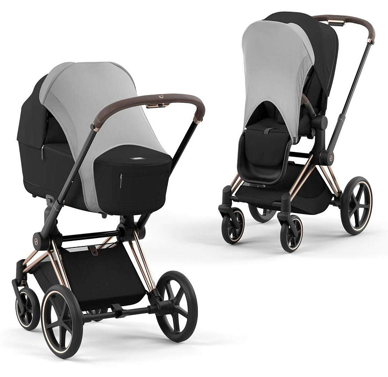 Солнцезащитный чехол крепится как к люльке Platinum Lux, так и к прогулочному сидению Lux, защищая ребенка от вредного излучения с рождения и примерно до четырех лет.