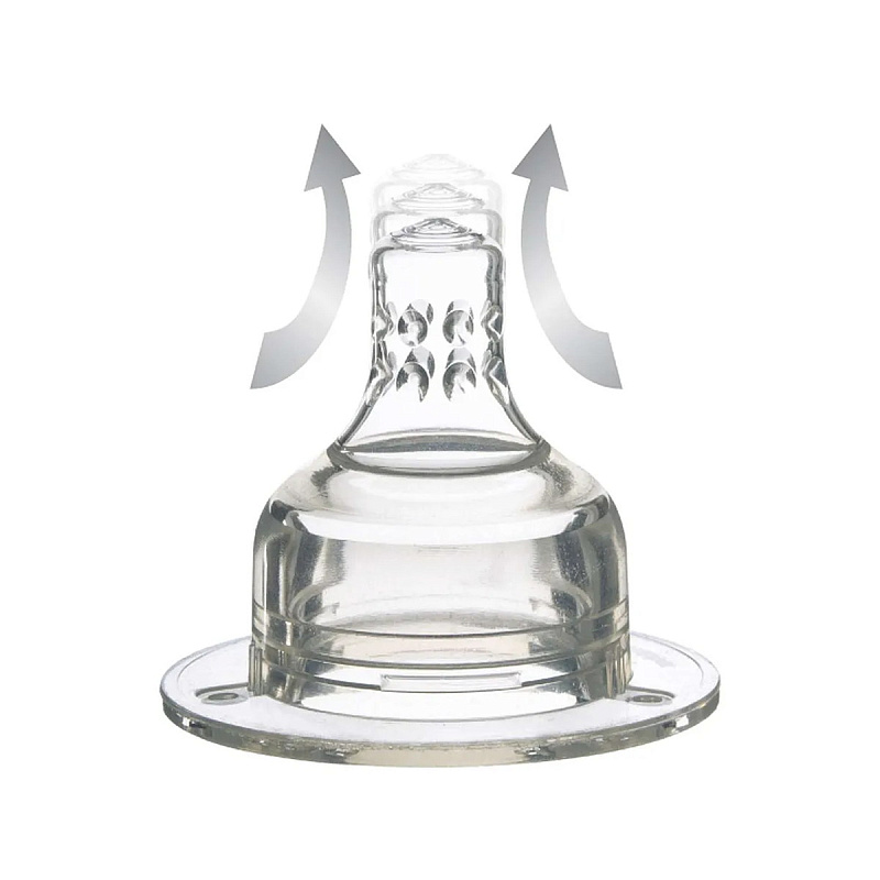побуждает ребенка правильно складывать губы и дышать через нос, кроме того, уникальная система циркуляции воздуха предотвращает появление коликов у новорожденных