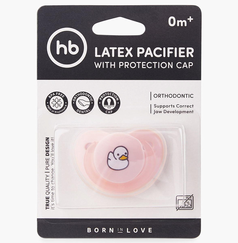 Соска-пустышка Happy Baby латексная с колпачком 0+ 13022 duck