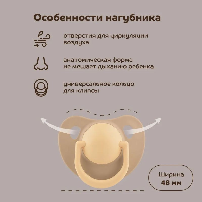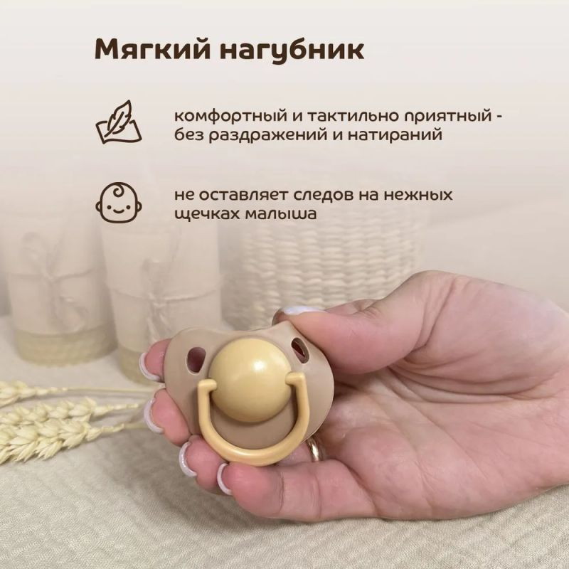 Уникальная соска-пустышка с мягким нагубником. Мягкий нагубник подходит для самой нежной и чувствительной кожи, не оставляет следы на щечках. Актуальный дизайн и расцветки для самых прогрессивных малышей и мам! Благодаря своей форме нагубник не закрывает нос ребенка, не мешая его дыханию. Отверстия на нагубнике обеспечивают свободную циркуляцию воздуха для предотвращения появления опрелостей. Кольцо позволяет дополнить пустышку клипсой, обеспечивая дополнительную защиту от загрязнения. Круглая форма соска обеспечивает естественный захват и подходит детям с рождения (указанный возраст является рекомендованным и зависит от индивидуальных особенностей развития ребенка). Изготовлена из безопасных материалов: гипоаллергенного силикона и высококачественного полипропилена.