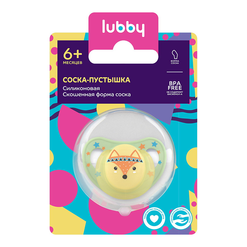 Соска-пустышка Lubby скошенный сосок от 6 мес. сил. 28558
